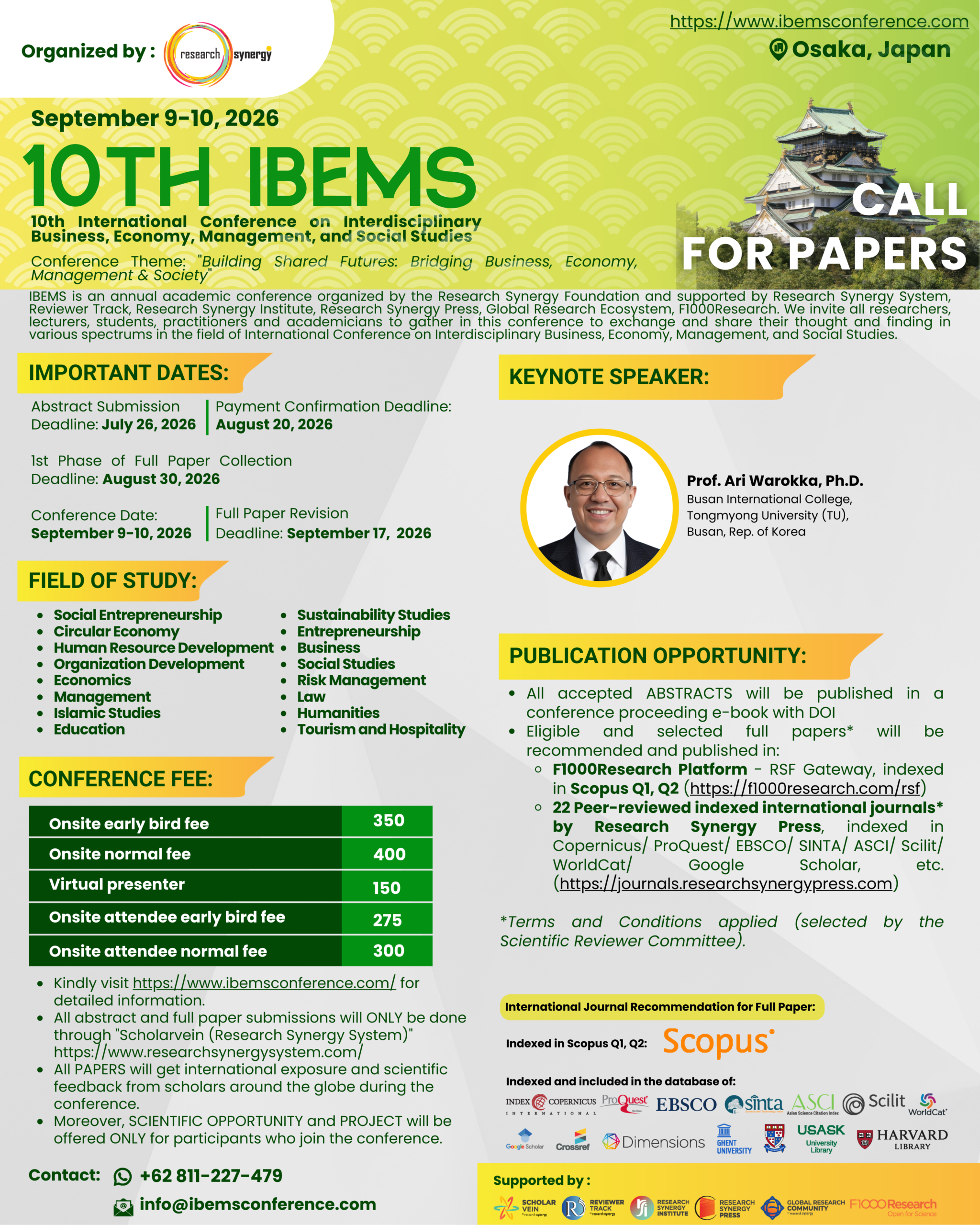 10th IBEMS committee through Research Synergy Foundation (RSF) hereby reiterates that we are NOT authorized to assist with any Visa application works. We, here include the organization itself, the conference secretariat, international liaisons and any individuals or parties related to the conference committee.